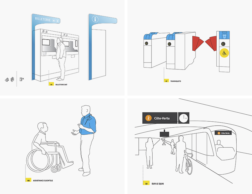 We believe that time and energy spent observing and gathering information are essential to understanding your needs. We love stepping away from the office to dive into the tasks and environments at stake and get to know the people who use them. What is the hidden logic of a place? How and where do customers interact with a service? Defining brand values and strategic goals gives us the foundation to build a creative process and brings your projects to life.