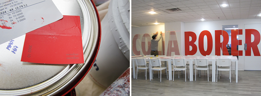 In harmony with a new interior revitalization, the design team created bold and outsize environmental graphics that reflect the school's entrepreneurial energy and its ambitious mission.In addition to fostering lively interactive spaces, the environmental graphics contribute to the entrepreneurial experience, as expressed in conferences, meetings, networking opportunities and recovery breaks.