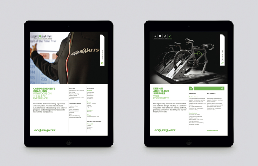 Les pièces créées sont plus proches d'un manifeste de marque que d'une brochure commerciale. Elles mettent en lumière les trois axes des systèmes PowerWatts: le coaching, l'équipement et l'analyse des données sur l'activité physique.