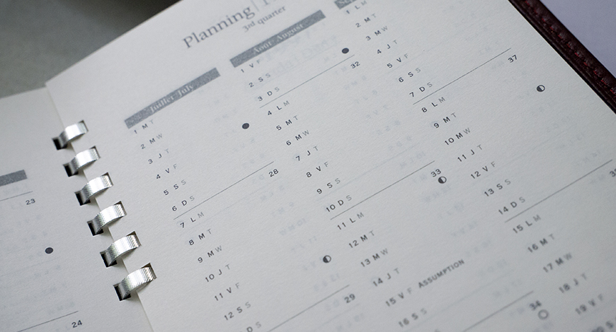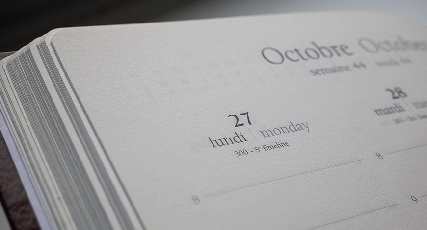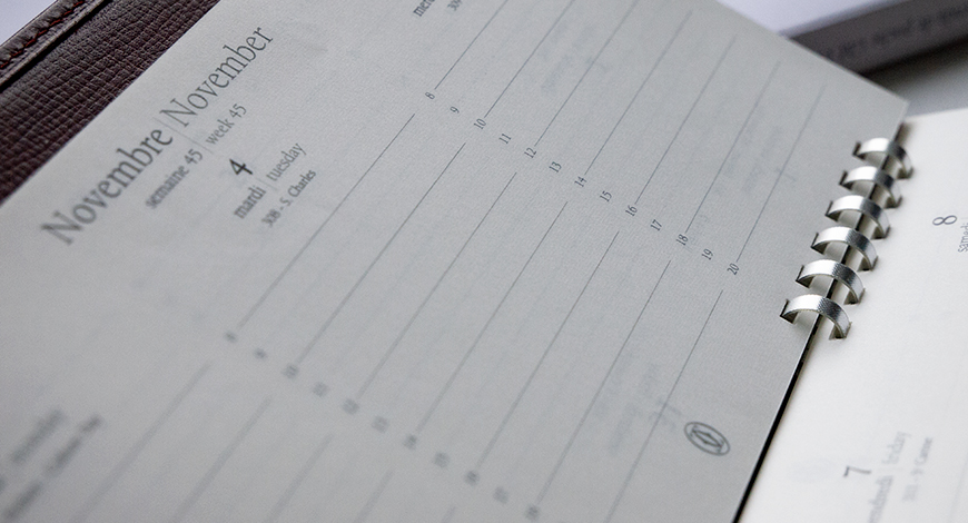 The new agenda collection offers more attractive models, functional spiral binding systems, and paper tested for permeability, transparency and agreeable writing pleasure. The newly designed page layouts, including conversion charts, city guides and vintage wine lists was an immediate success with a new generation of customers in a increasingly competitive high-end market.