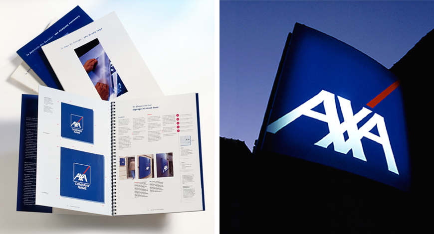 Following several acquisitions by this leading assistance services provider, it became apparent that logo management would be essential to AXA's global profile, reputation and continued growth. Paris-based Dragon Rouge design strategists worked closely with commercial architects to produce flexible and highly coherent visual identity guidelines for AXA and its companies worldwide. Over several years they issued individual volumes of guidelines for the company logo, group logo, stationery, corporate signage and worldwide distribution networks signage. These have proven to be invaluable tools for AXA's image management for over 20 years.