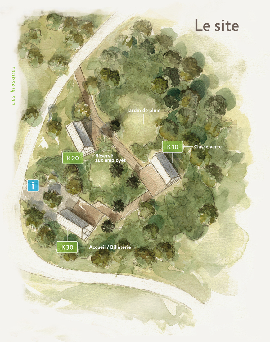 scénographie des vues. Les kiosques accueillant des